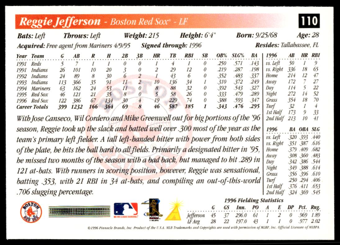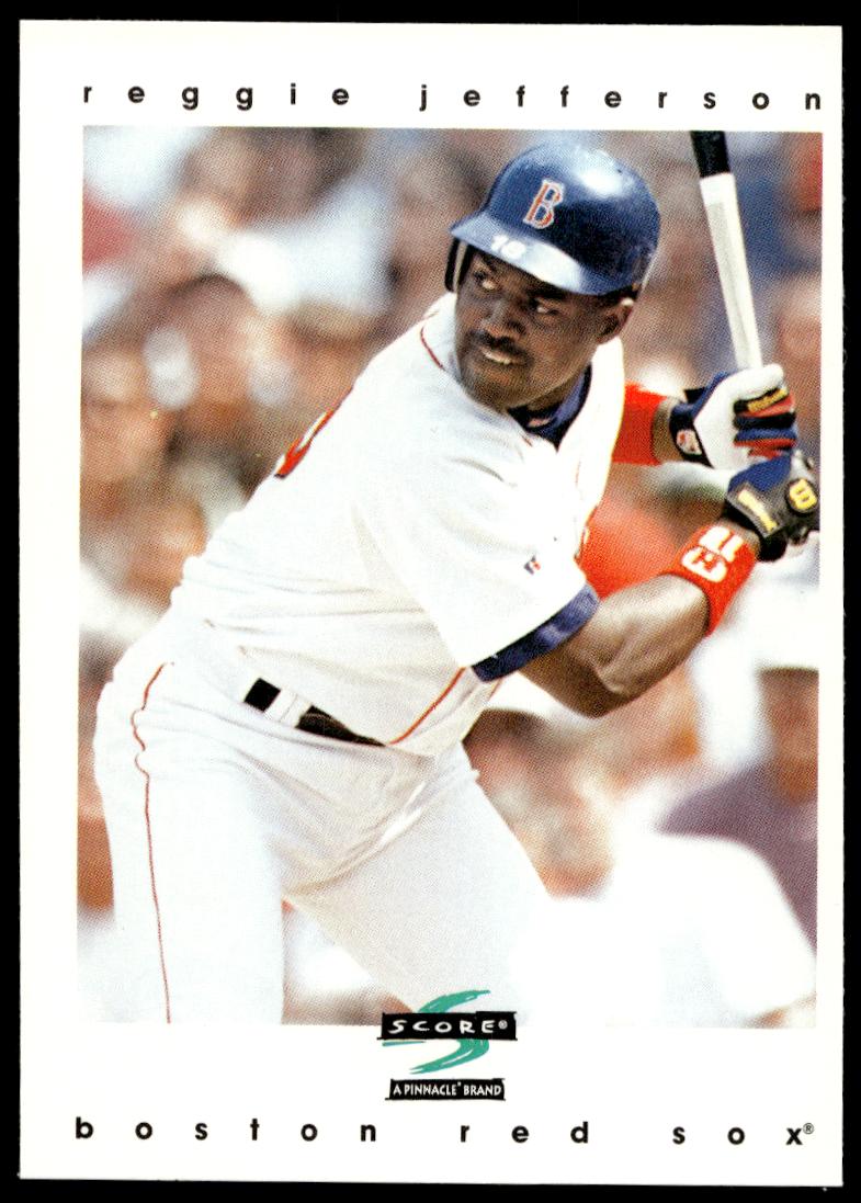 This BaseballΒ card, from 1997 is part of the Pinnacle ScoreΒ card set. Reggie Jefferson is featured and has a card number of 4.