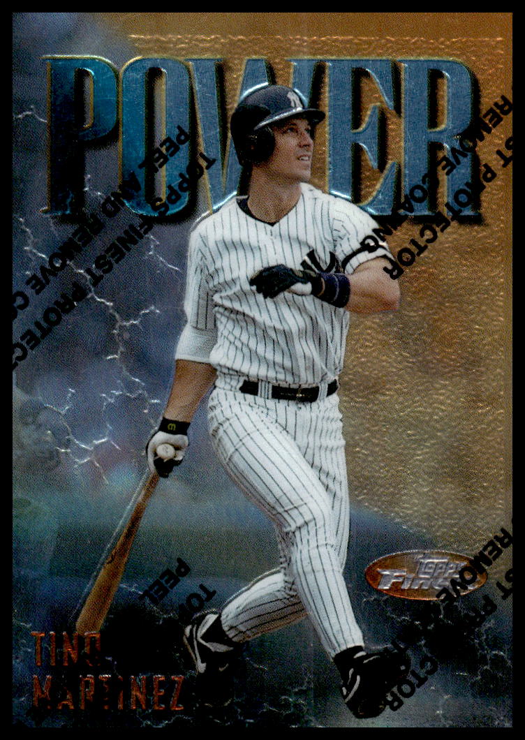This BaseballΒ card, from 1997 is part of the Topps FinestΒ card set. Tino Martinez is featured and has a card number of 204.