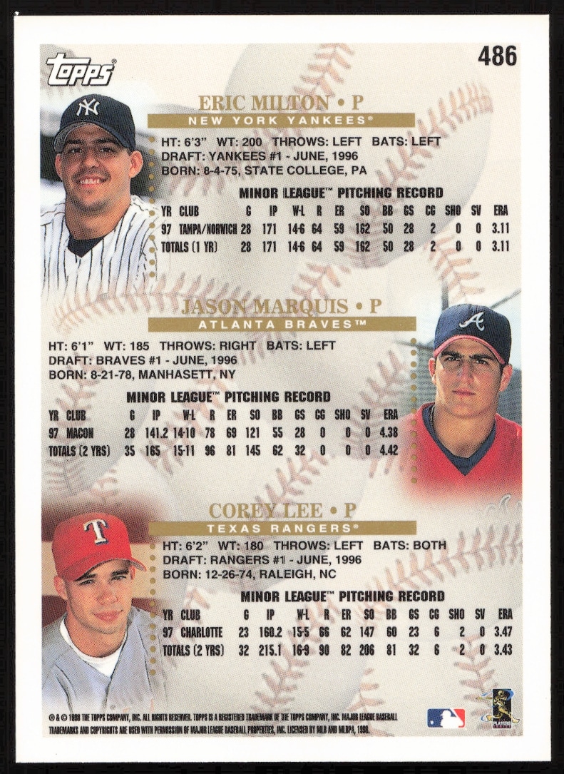 1998 Topps Eric Milton / Marquis Grissom / Corey Lee Prospects #486