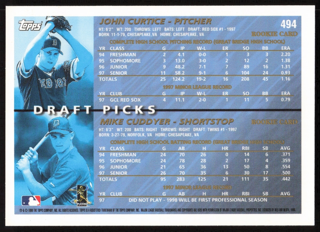 1998 Topps John Curtice / Michael Cuddyer Draft Picks #494