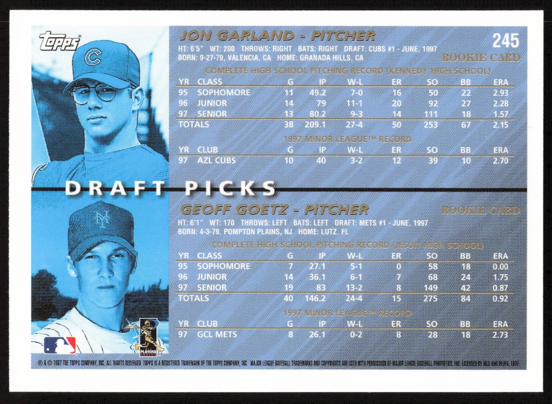 1998 Topps Jon Garland / Geoff Goetz Draft Picks #245