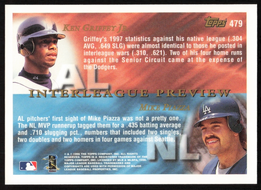 1998 Topps Mike Piazza / Ken Griffey Jr. Interleague Preview #479