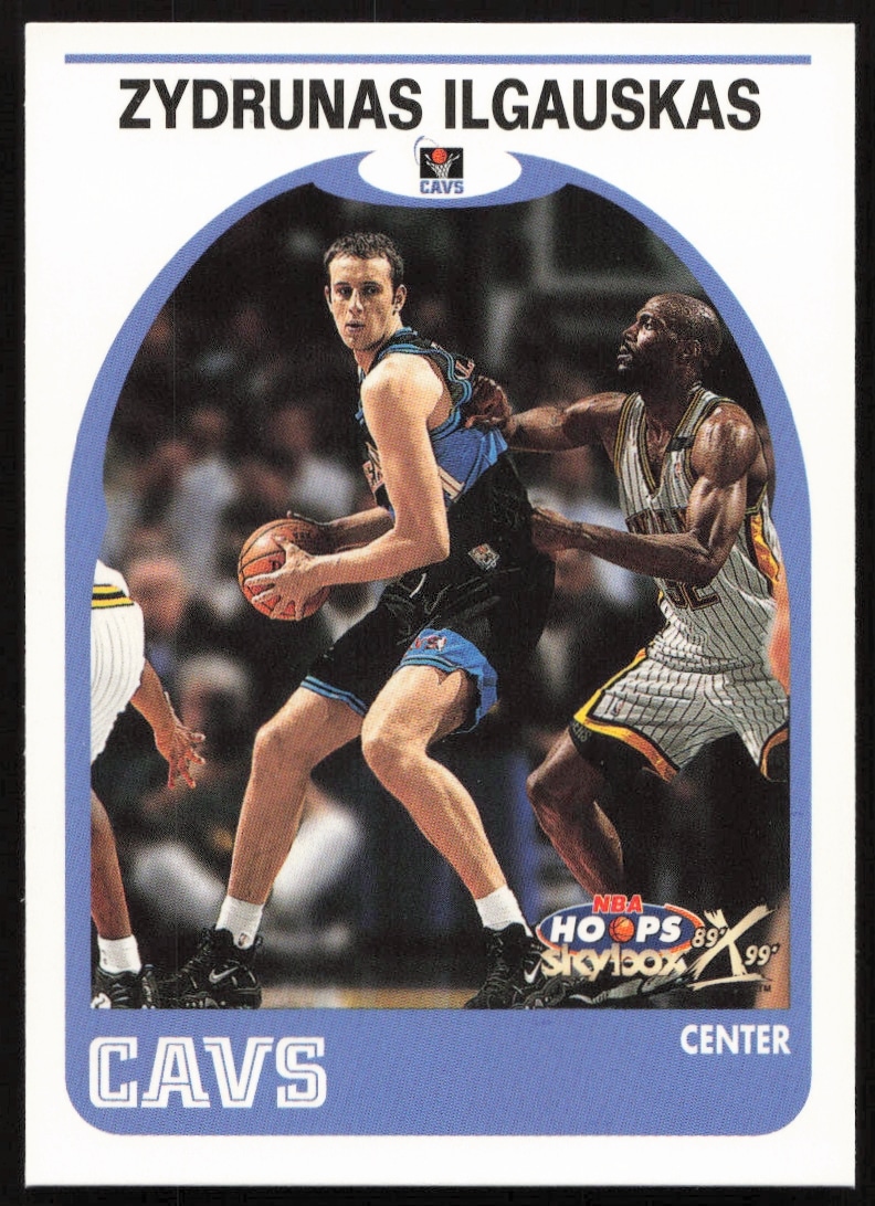 This Basketball card, from 1999-00 is part of the Skybox NBA Hoops Decade card set. Zydrunas Ilgauskas is featured and has a card number of 124.