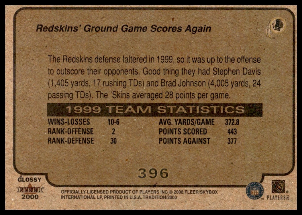 2000 Fleer Tradition Glossy Redskins’ Ground Game Scores Again #396