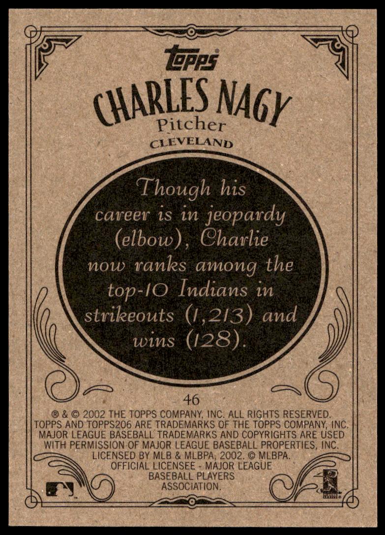 This Baseball card, from 2002 is part of the Topps 206 card set. Charles Nagy is featured and has a card number of 46.