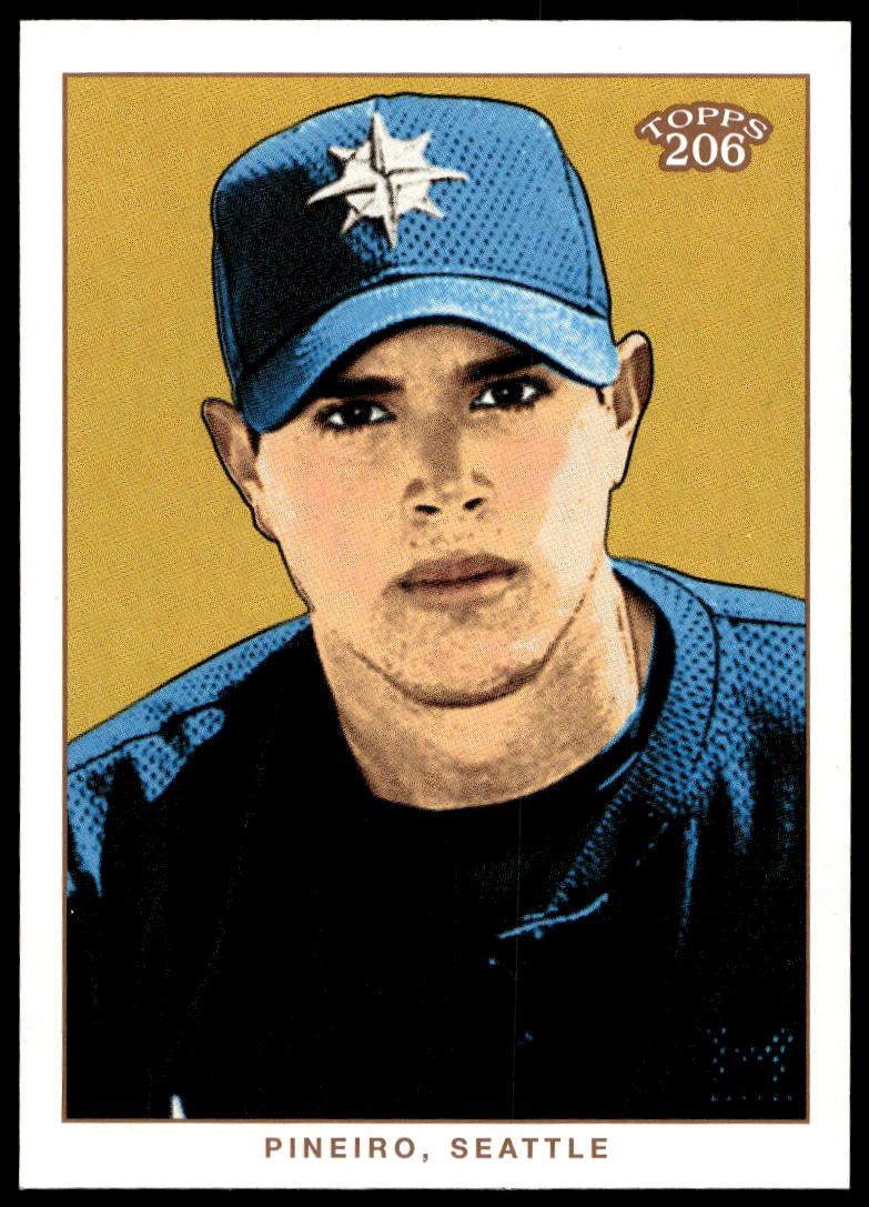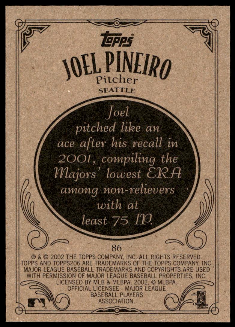 This Baseball card, from 2002 is part of the Topps 206 card set. Joel Pineiro is featured and has a card number of 86.