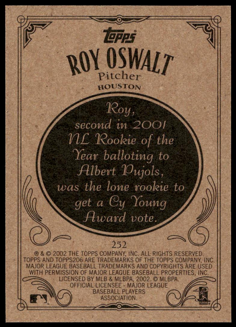 This Baseball card, from 2002 is part of the Topps 206 card set. Roy Oswalt is featured and has a card number of 252.