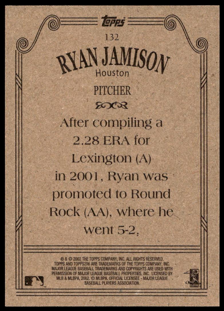 This Baseball card, from 2002 is part of the Topps 206 card set. Ryan Jamison is featured and has a card number of 132.