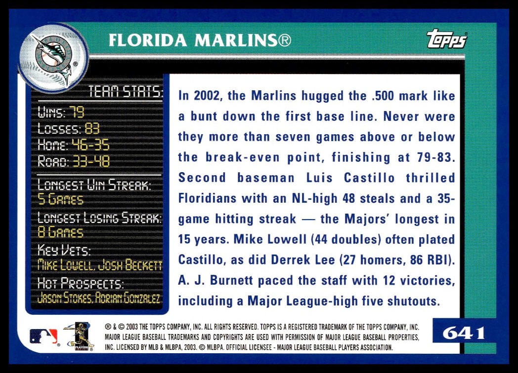 2003 Topps Florida Marlins #641