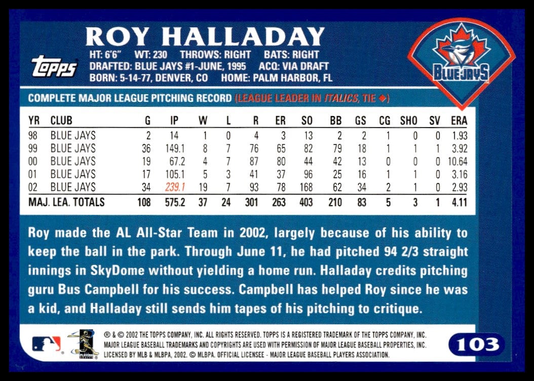 2003 Topps Roy Halladay #93