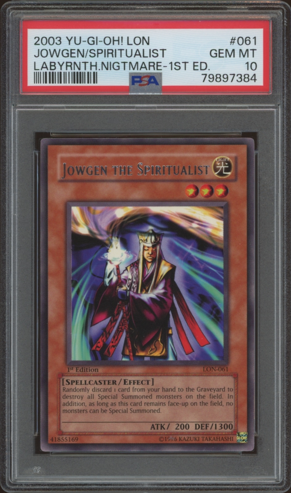 2003 Yu-Gi-Oh! Labyrinth of Nightmare 1st Edition Jowgen the Spiritualist #LON-061, graded PSA 10, a must-have for collectors and fans!