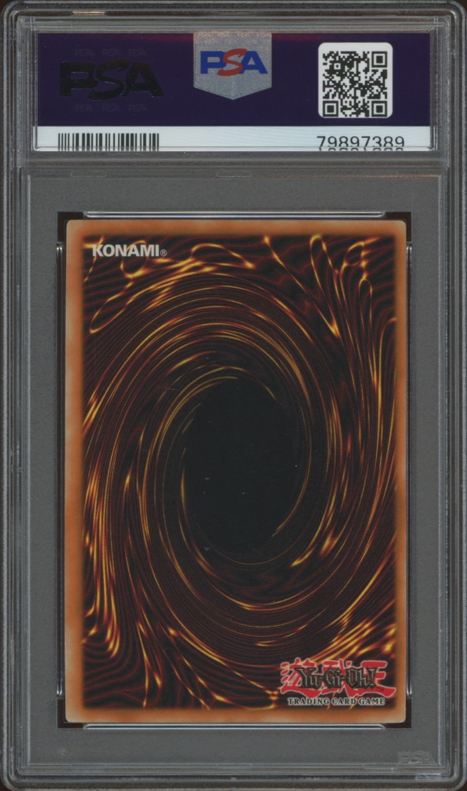 This card, from 2003 is part of the Yu-Gi-Oh! Starter Deck: Pegasus (1st Edition) card set. Relinquished is featured and has a card number of SDP-001. It is graded by PSA and has a numeric grade of 9.