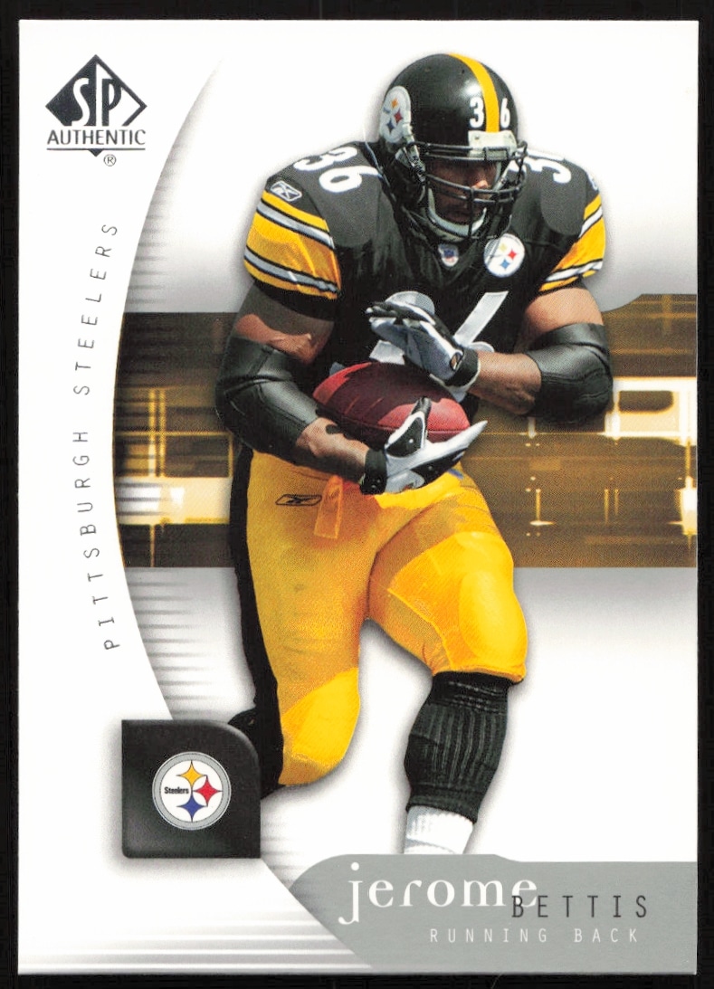 This Football card, from 2005 is part of the Upper Deck SP Authentic card set. Jerome Bettis is featured and has a card number of 70.