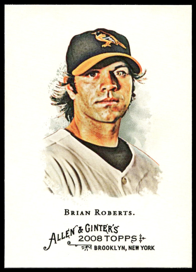 This Baseball card, from 2008 is part of the Topps Allen & Ginter card set. Brian Roberts is featured and has a card number of 265.