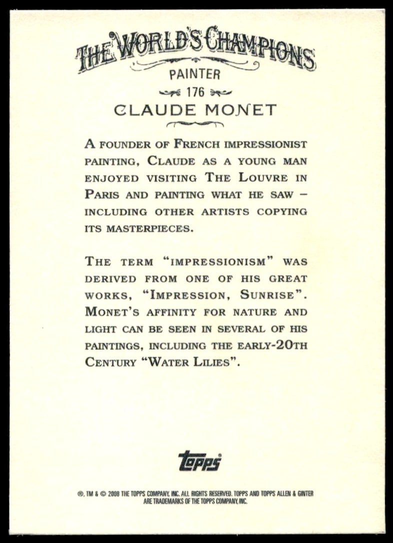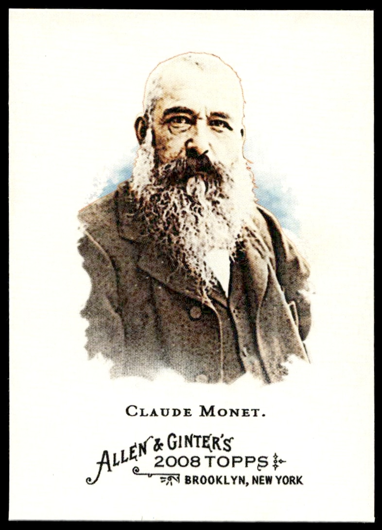 This Baseball card, from 2008 is part of the Topps Allen & Ginter card set. Claude Monet is featured and has a card number of 176.