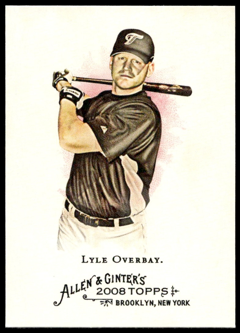 This Baseball card, from 2008 is part of the Topps Allen & Ginter card set. Lyle Overbay is featured and has a card number of 152.