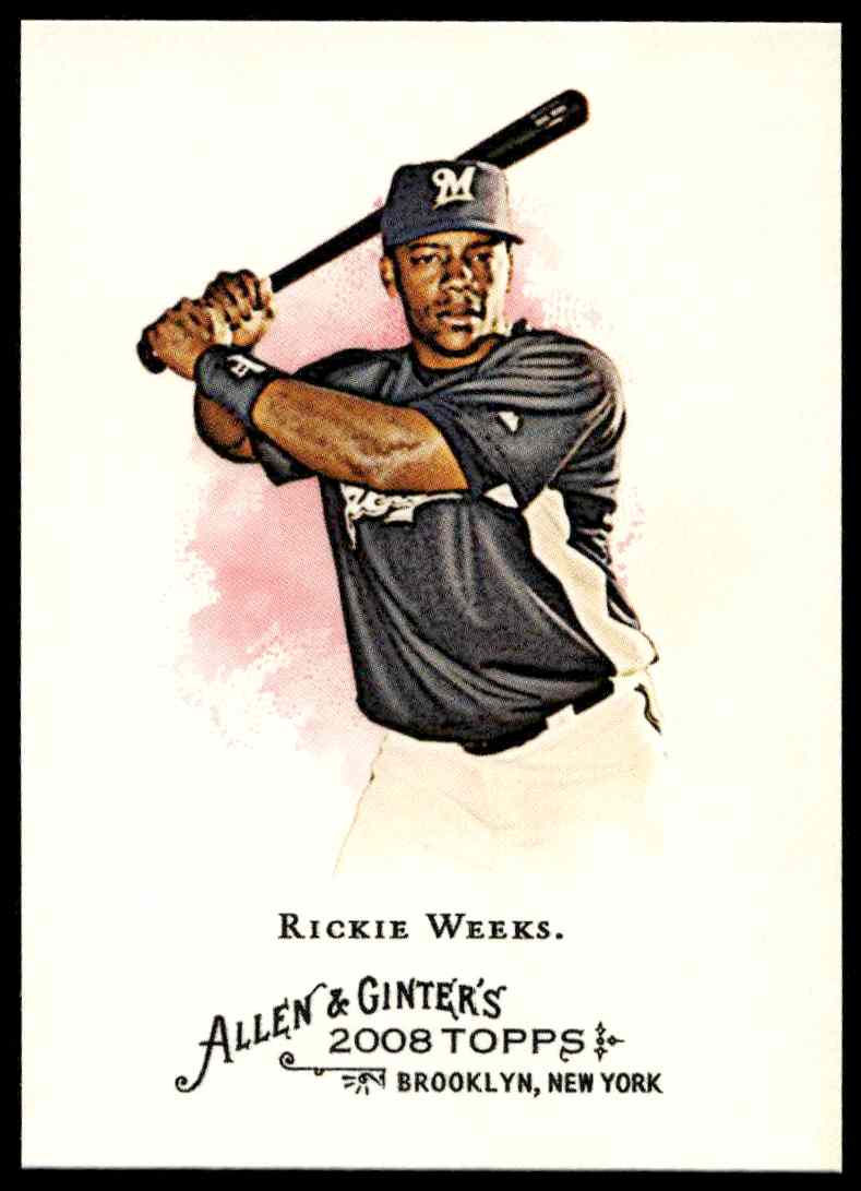 This Baseball card, from 2008 is part of the Topps Allen & Ginter card set. Rickie Weeks is featured and has a card number of 43.