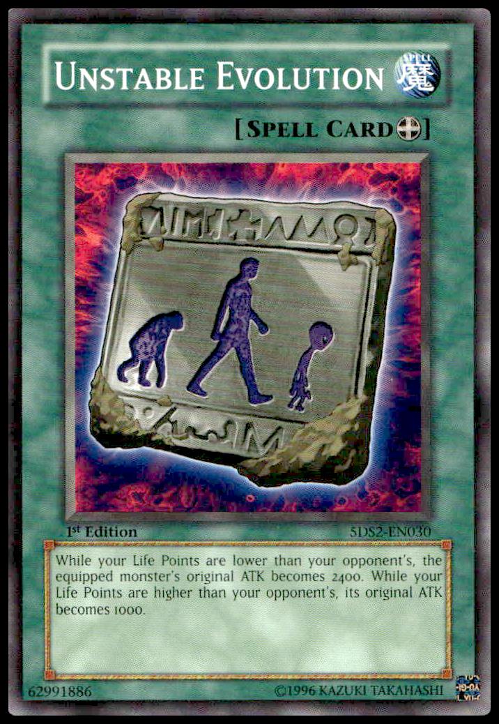 This Yu-Gi-OhΒ card, from 2008 is part of the Yu-Gi-Oh! The Duelist Genesis (1st Edition)Β card set. Unstable Evolution is featured and has a card number of TDGS-EN060.