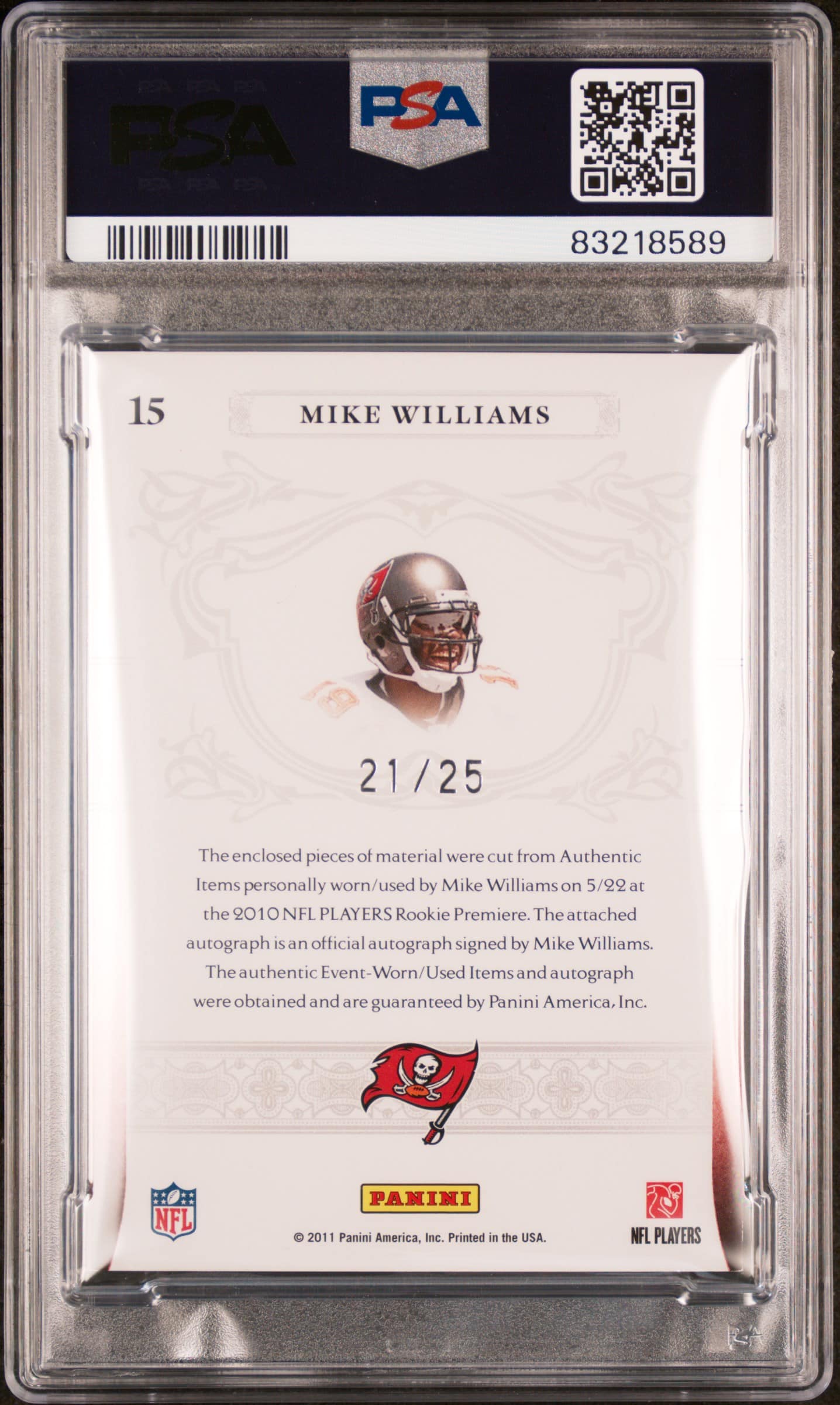 2010 Playoff National Treasures Mike Williams NFL Gear Combos Autograph Prime #15 (/25) (Auto) (PSA 6)