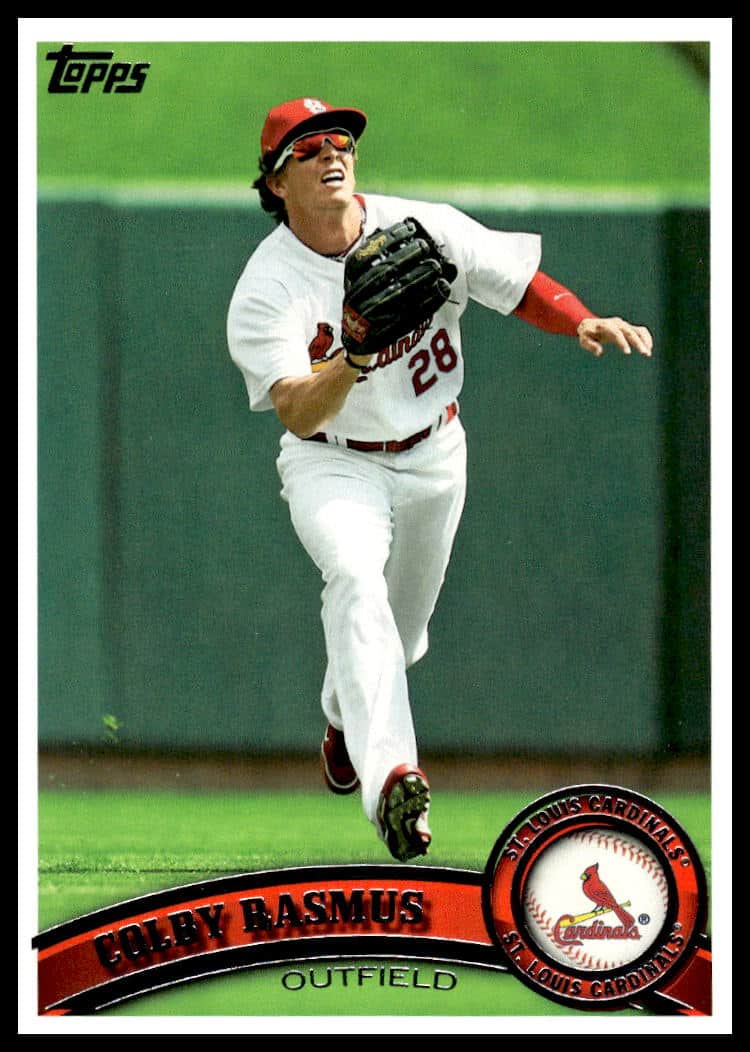 This Baseball card, from 2011 is part of the Topps  card set. Colby Rasmus is featured and has a card number of 448.