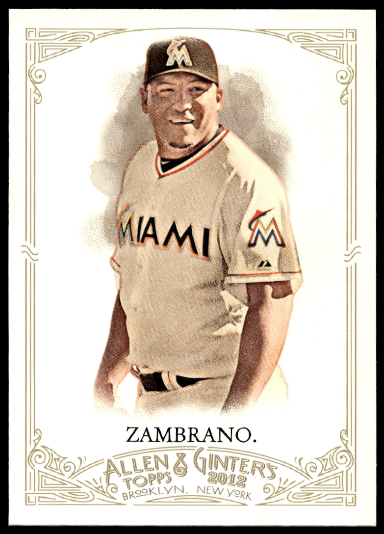 This Baseball card, from 2012 is part of the Topps Allen & Ginter card set. Carlos Zambrano is featured and has a card number of 30.