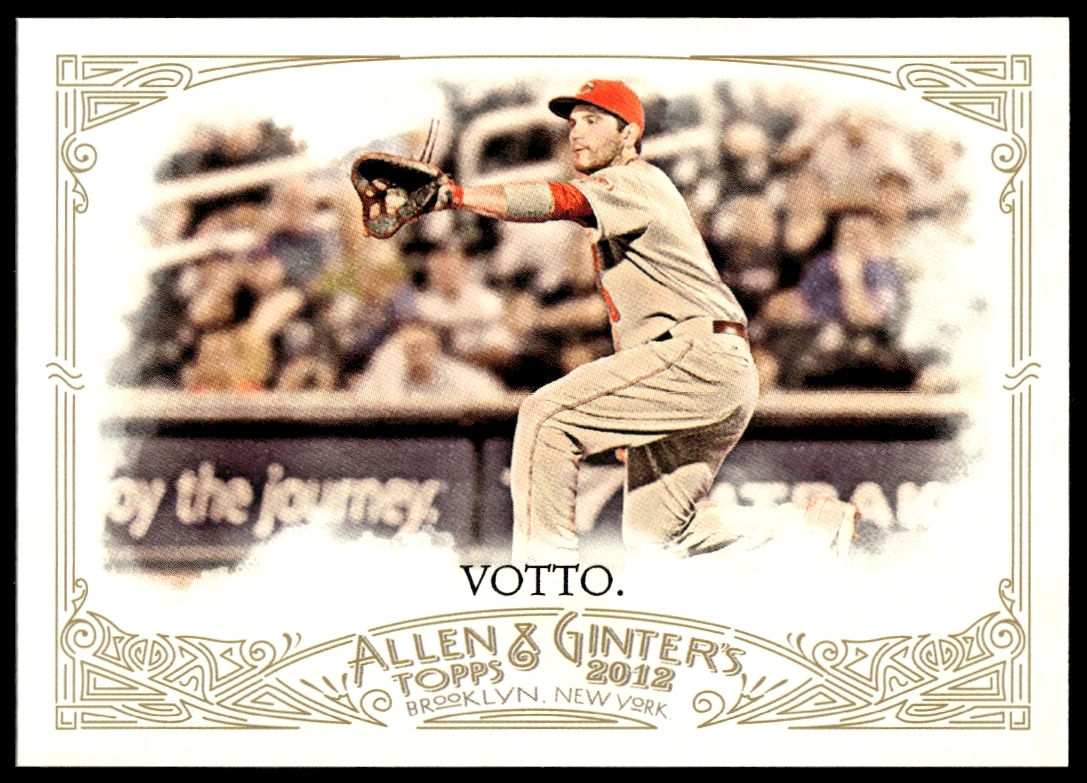 This Baseball card, from 2012 is part of the Topps Allen & Ginter card set. Joey Votto is featured and has a card number of 206.