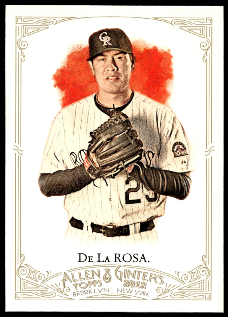 This Baseball card, from 2012 is part of the Topps Allen & Ginter card set. Jorge de la Rosa is featured and has a card number of 253.