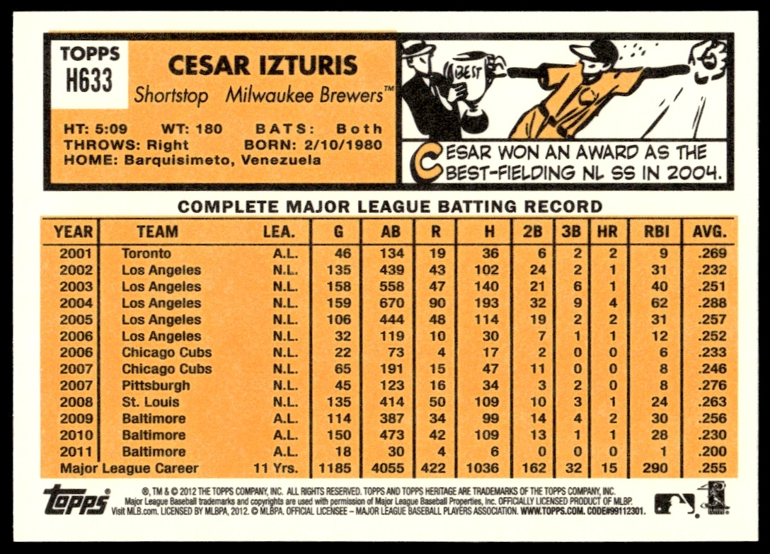 2012 Topps Heritage High Number Cesar Izturis #H633