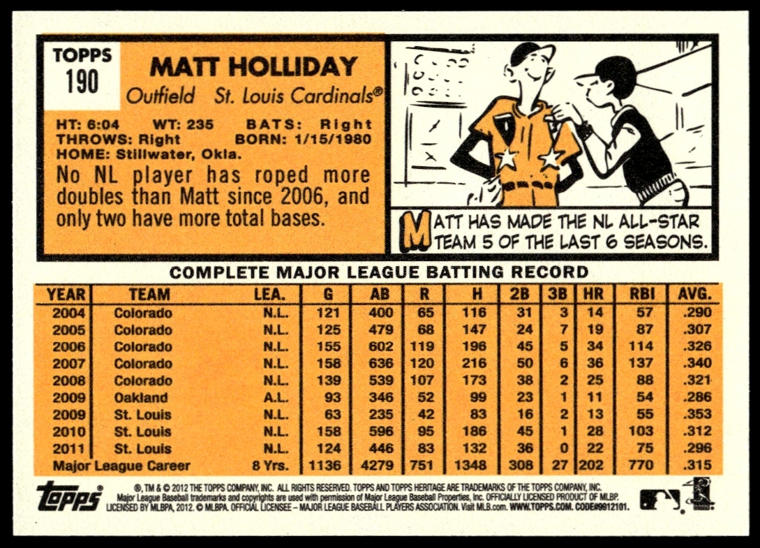 2012 Topps Heritage Matt Holliday #190