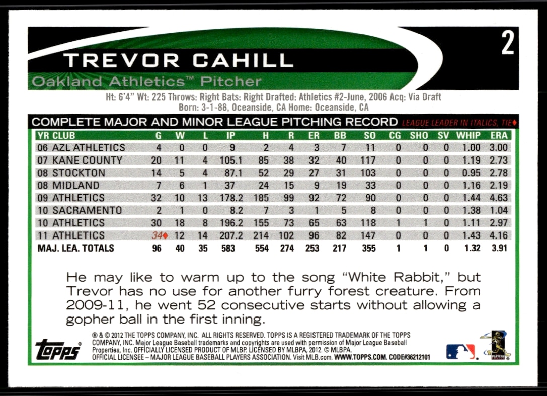 2012 Topps Trevor Cahill #2