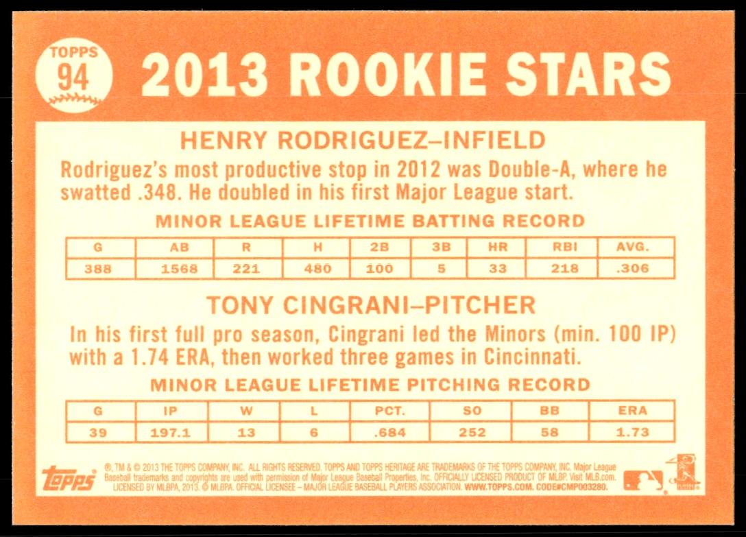 2013 Topps Heritage Henry Rodriguez / Tony Cingrani #94