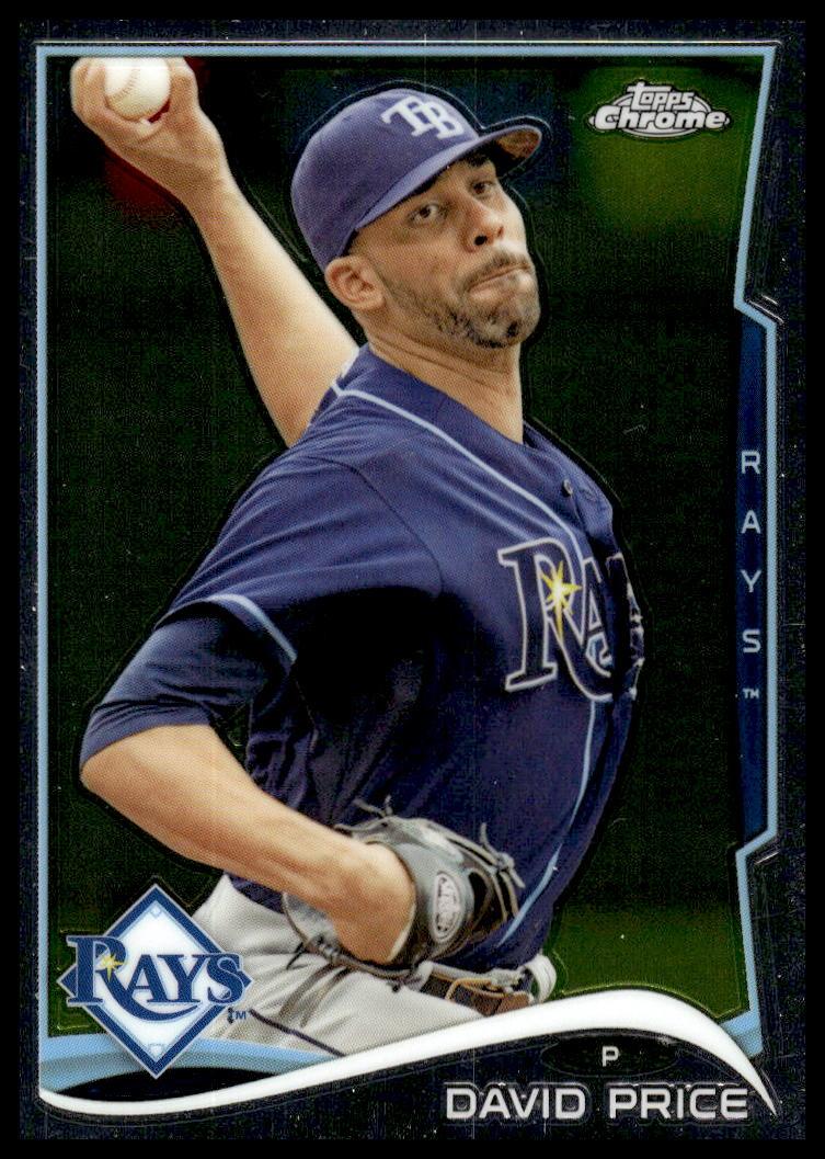 This Baseball card, from 2014 is part of the Topps Chrome card set. David Price is featured and has a card number of 63.