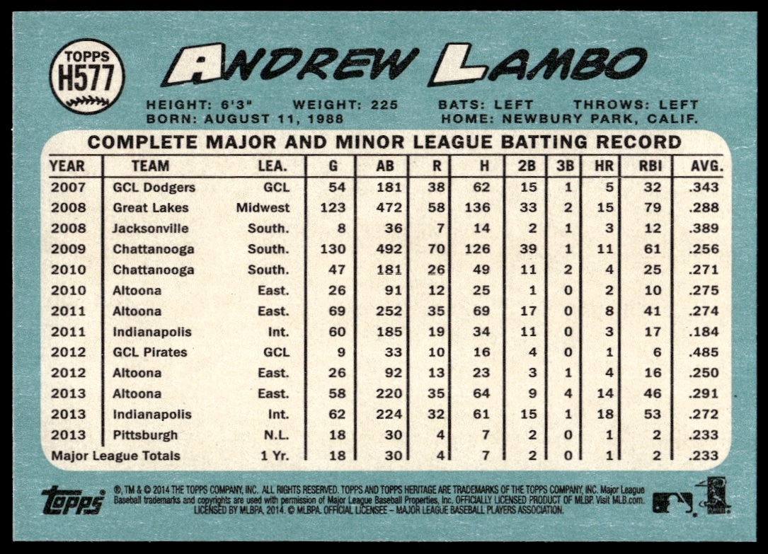 2014 Topps Heritage High Card Andrew Lambo #H577