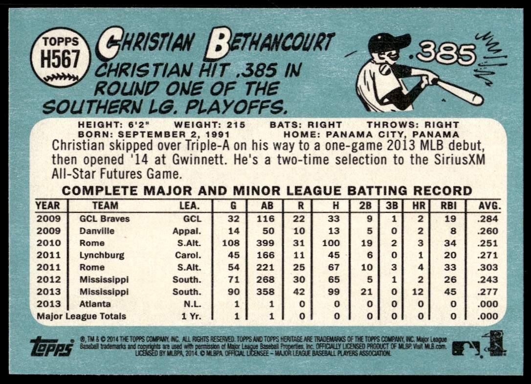 2014 Topps Heritage High Card Christian Bethancourt #H567