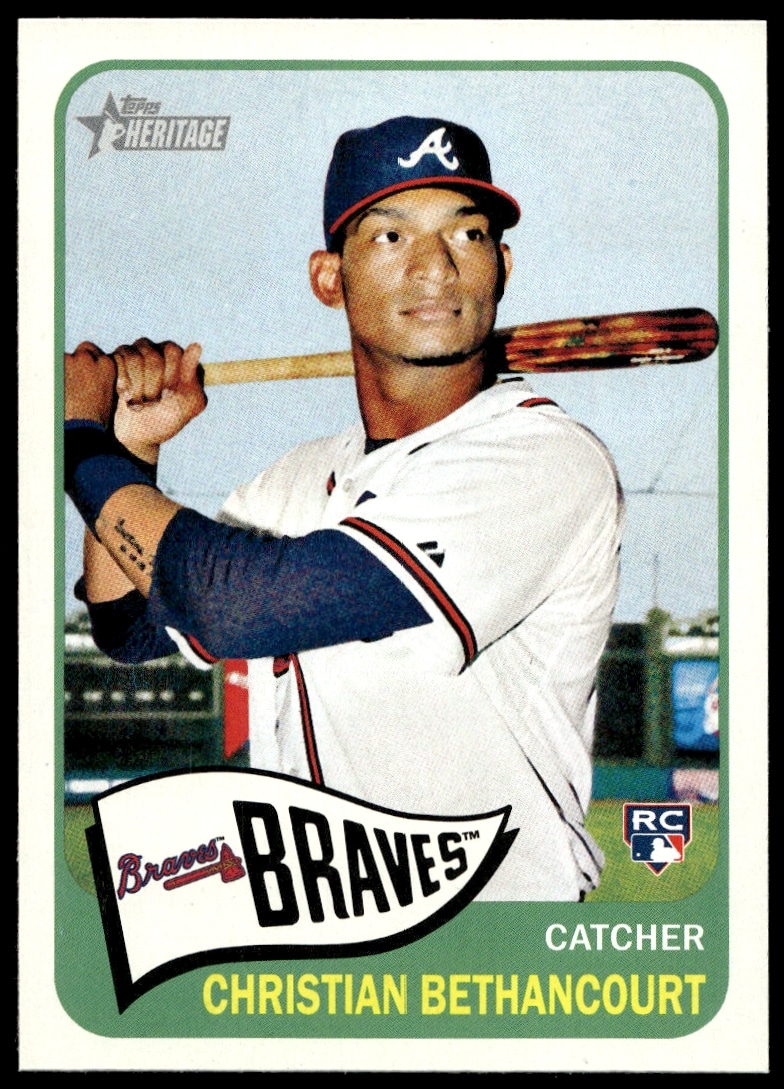 This BaseballΒ card, from 2014 is part of the Topps Heritage High CardΒ card set. Christian Bethancourt is featured and has a card number of H567.