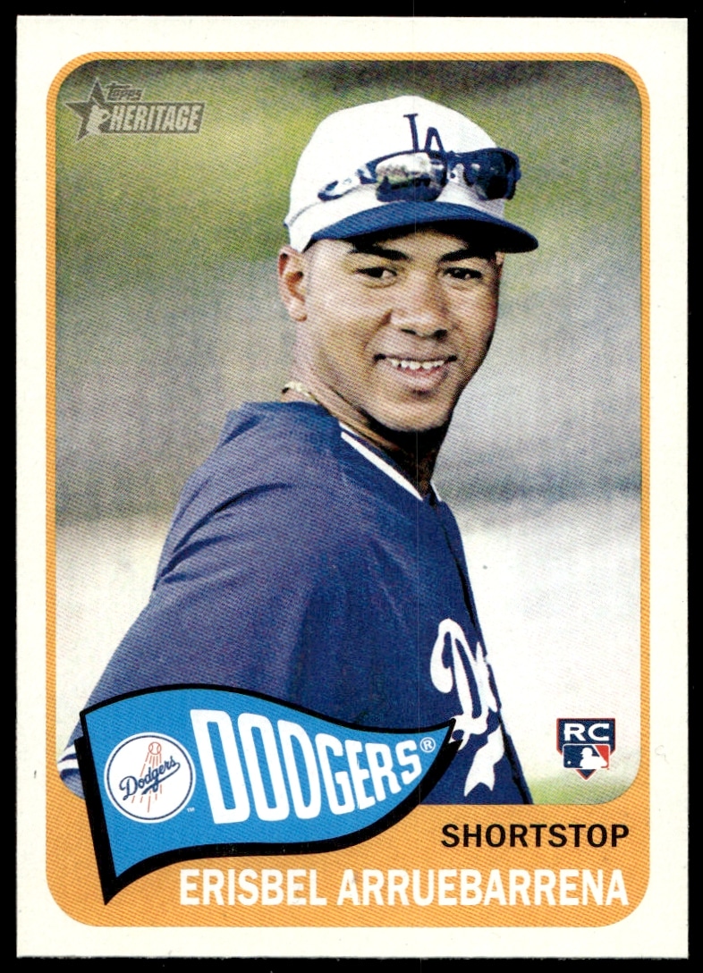 This Baseball card, from 2014 is part of the Topps Heritage High Number card set. Erisbel Arruebarrena is featured and has a card number of H551.