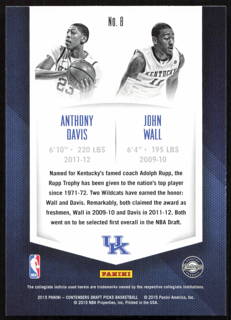 2015-16 Panini Contenders Draft Picks Anthony Davis / John Wall Collegiate Connections #8
