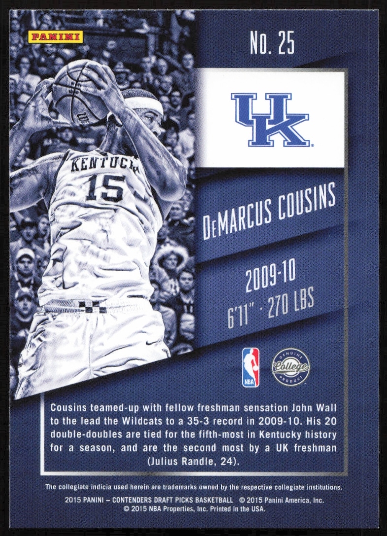 2015-16 Panini Contenders Draft Picks DeMarcus Cousins #25