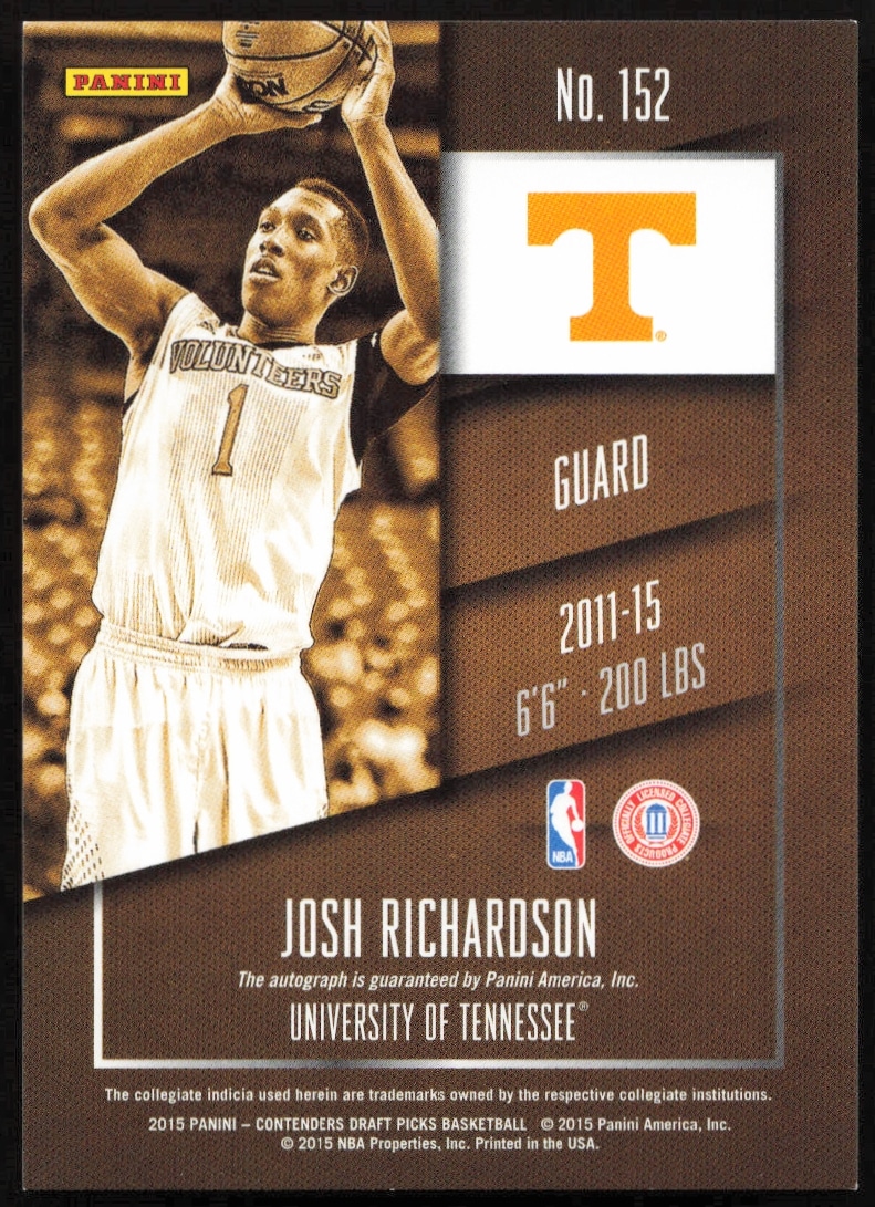 2015-16 Panini Contenders Draft Picks Josh Richardson #152 autographed card, a must-have for collectors and fans alike.