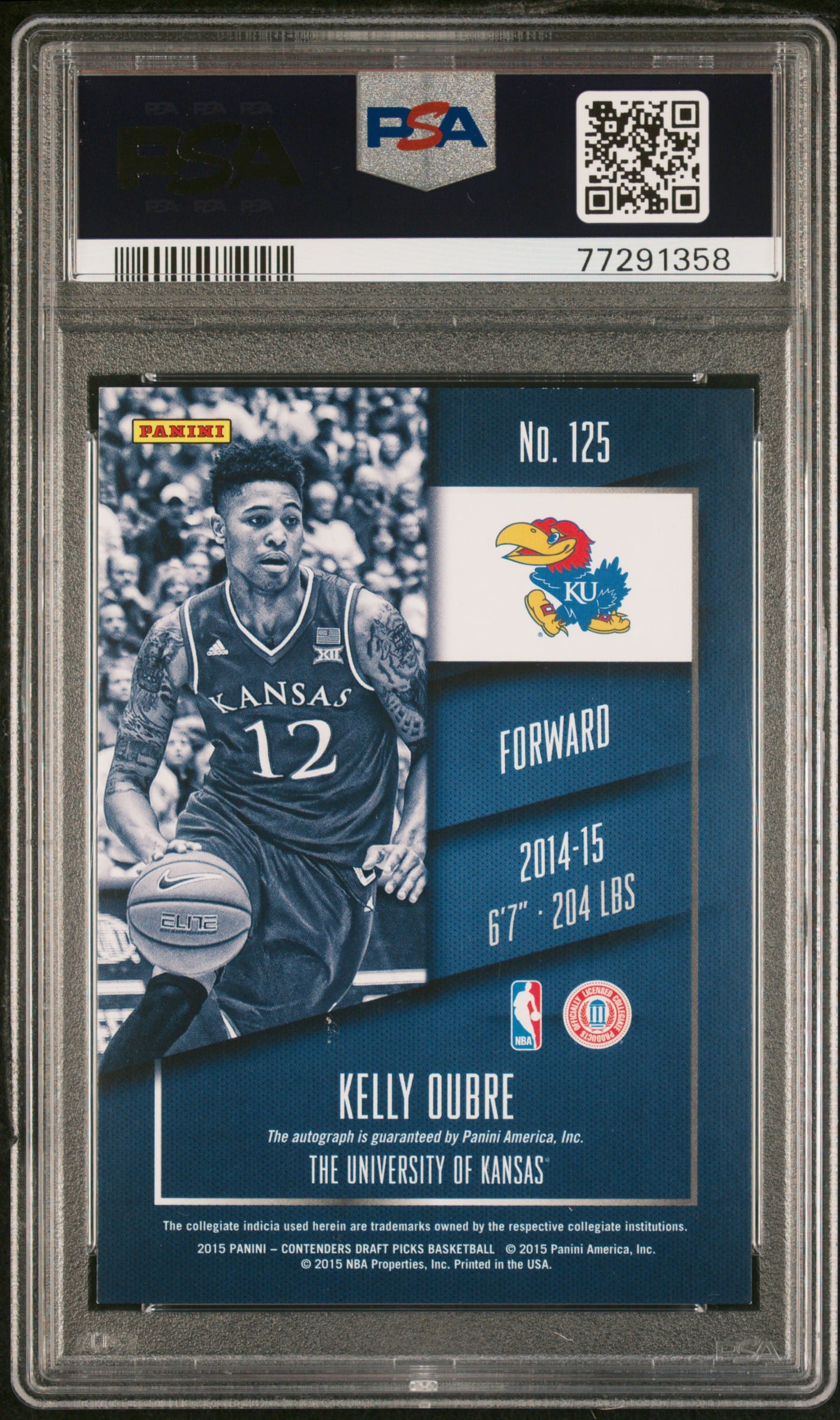 Limited edition 2015-16 Panini Contenders Kelly Oubre Jr. Playoff Ticket Blue Jersey #125 (/15) auto, graded PSA 9. Collectible for any fan!