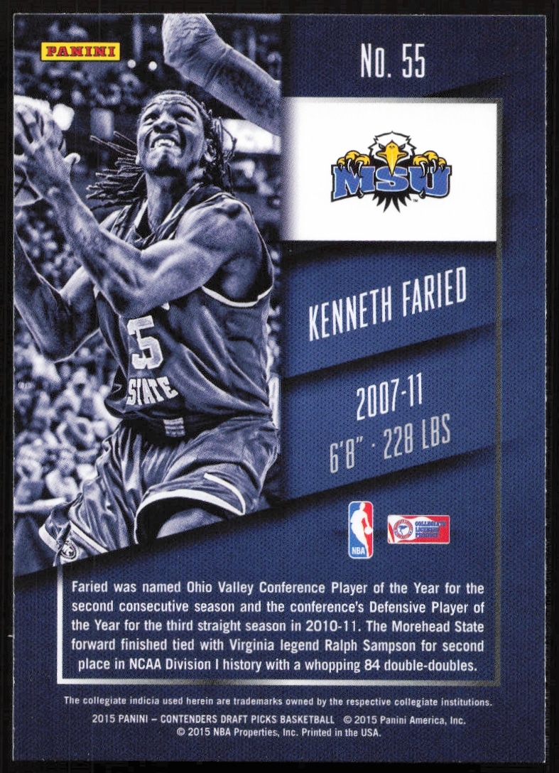2015-16 Panini Contenders Draft Picks Kenneth Faried #55