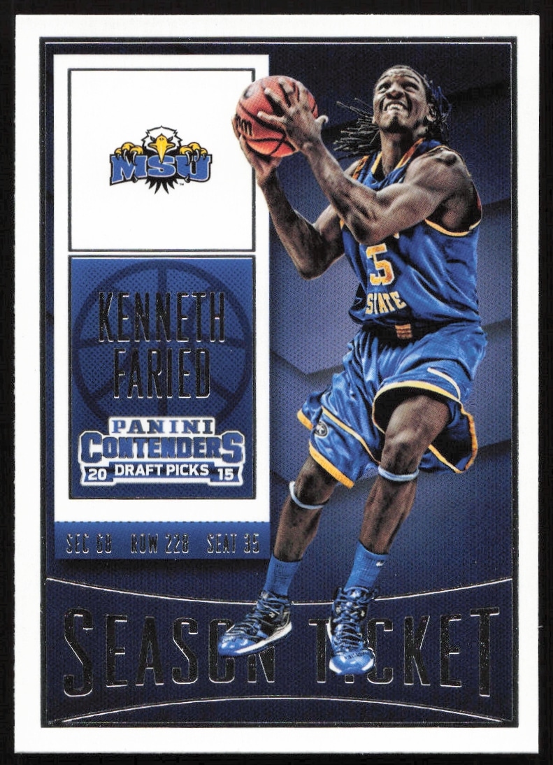 This Basketball card, from 2015-16 is part of the Panini Contenders Draft Picks card set. Kenneth Faried is featured and has a card number of 55.