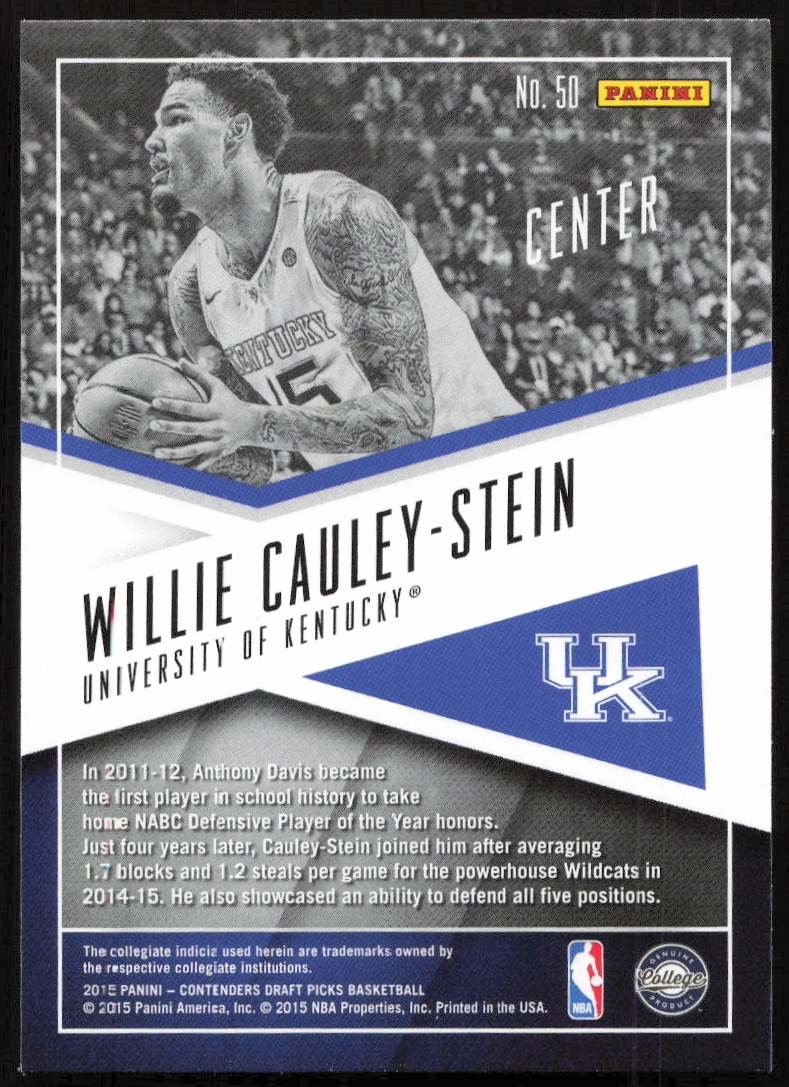 2015-16 Panini Contenders Draft Picks Willie Cauley-Stein School Colors #50