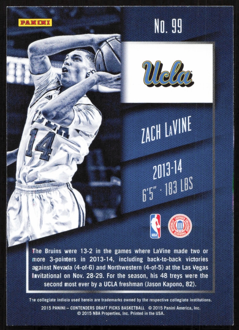 2015-16 Panini Contenders Draft Picks Zach LaVine #99
