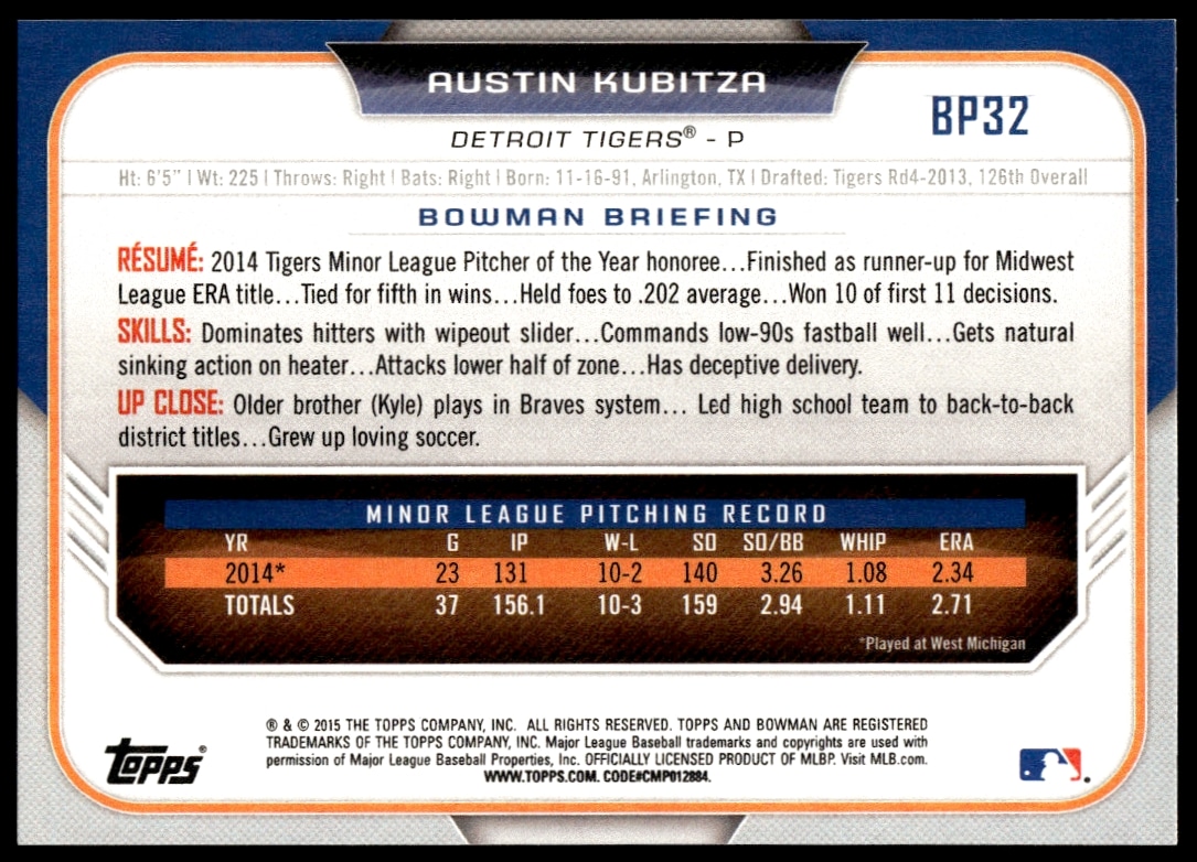 2015 Bowman Draft Austin Kubitza Prospects #BP32