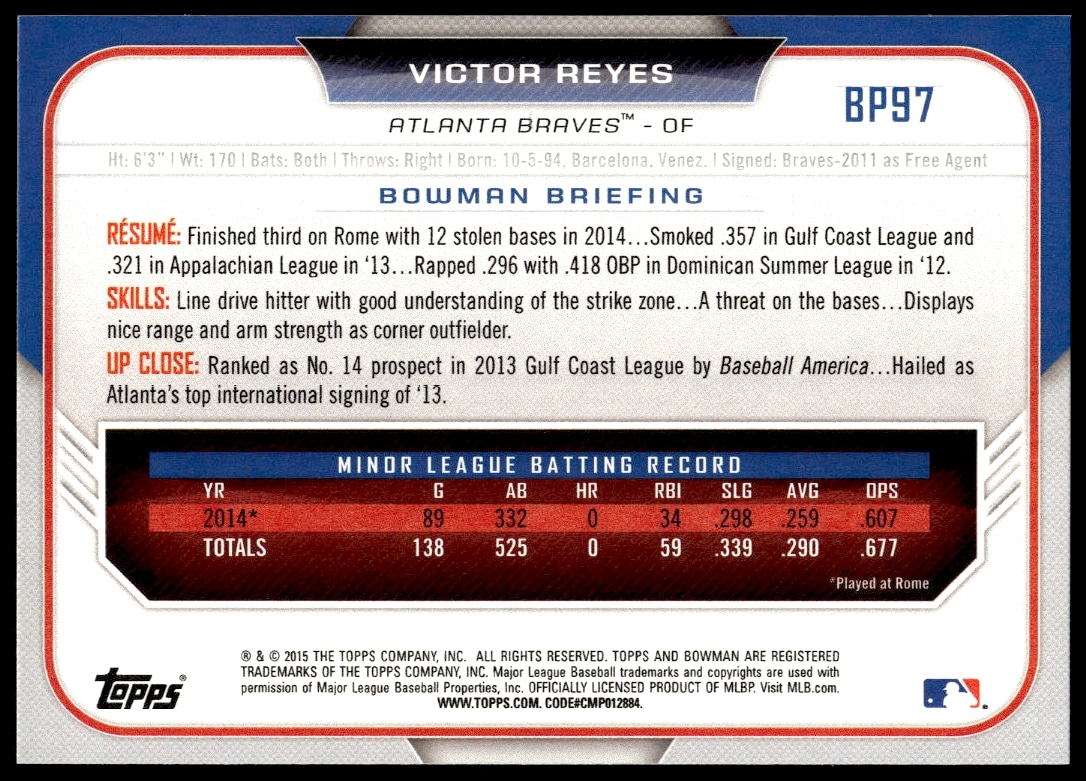 2015 Bowman Draft Victor Reyes Prospects #BP97