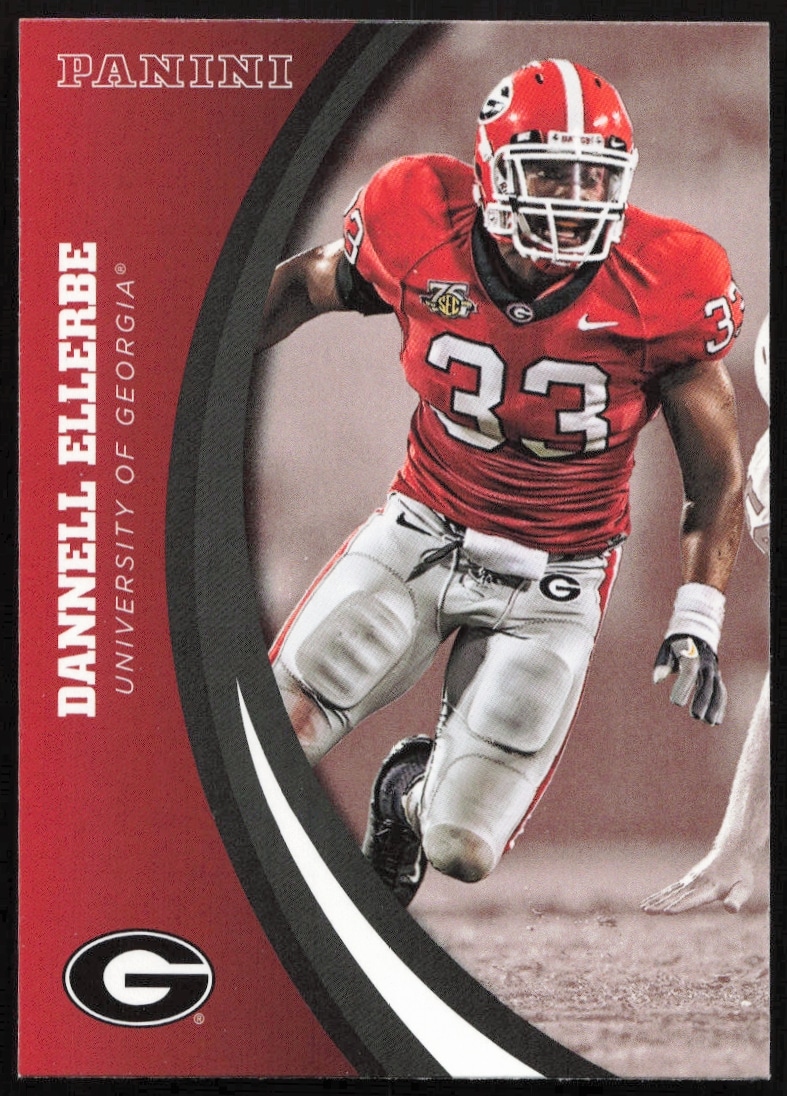 This Football card, from 2015 is part of the Panini Georgia Bulldogs card set. Dannell Ellerbe is featured and has a card number of 22.