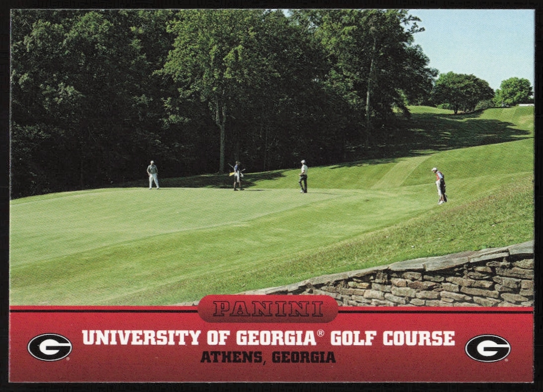 This Golf card, from 2015 is part of the Panini Georgia Bulldogs card set. University Of Georgia Golf Course is featured and has a card number of 9.