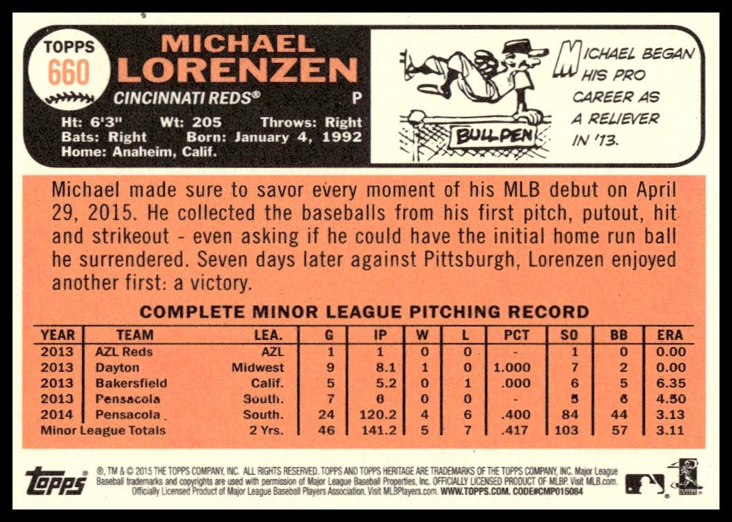 2015 Topps Heritage High Number Michael Lorenzen #660