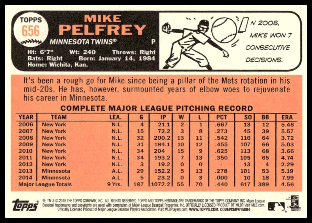 Home Β» 2015 Topps Heritage High Number Mike Pelfrey #656